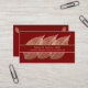 This unique, nature-inspired business card features three golden leaves, tilted at an angle, with your name in gold. The background is a maroon, which some might describe as dark red or burgundy, reminiscent of autumn leaves on a fall day. On the front your name and title appear in a box overlain on the leaves. On the back, your email, name, and phone appear at the top in larger type, with your address, website, and other details on the bottom. Two small gold leaves provide accents at the top. The template makes it easy to enter your text, and you can mix up which details you include where, or you can opt to further optimise colours and placement.