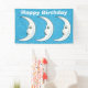 This cloth banner is a vibrant aqua blue colour with three white crescent moons with faces surrounded by a scattering of little white stars.  Customise the Happy Birthday text with the template.