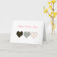 My digital design has three hearts in shades of pink, grey, green and black on a crisp white background. Each heart has a trellis of ivy and rose buds. Your message in the pretty pink font can be customised on the front and inside of the card.
