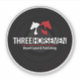 A transparent sticker with the logo of Three horsemen record label and publishing.
