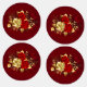 The composition of two artistically painted red roses and one golden rose, decorated with gold, jewel leaves on textured background.