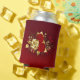 The composition of two artistically painted red roses and one golden rose, decorated with gold, jewel leaves on textured background.