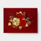 The composition of two artistically painted red roses and one golden rose, decorated with gold, jewel leaves on textured background.