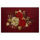 The composition of two artistically painted red roses and one golden rose, decorated with gold, jewel leaves on textured background.