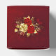 The composition of two artistically painted red roses and one golden rose, decorated with gold, jewel leaves on textured background.