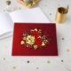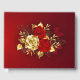 The composition of two artistically painted red roses and one golden rose, decorated with gold, jewel leaves on textured background.