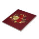 The composition of two artistically painted red roses and one golden rose, decorated with gold, jewel leaves on textured background.