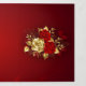 The composition of two artistically painted red roses and one golden rose, decorated with gold, jewel leaves on textured background.