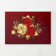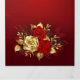 The composition of two artistically painted red roses and one golden rose, decorated with gold, jewel leaves on textured background.