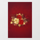 The composition of two artistically painted red roses and one golden rose, decorated with gold, jewel leaves on textured background.