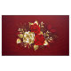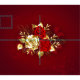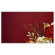 The composition of two artistically painted red roses and one golden rose, decorated with gold, jewel leaves on textured background.