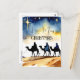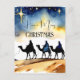 Three kings Christmas greetings religious greetings Christmas postcard, three kings travelling in a desert under starry night sky