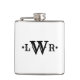 Three Letter Monogram Custom Elegant Black & White Hip Flask