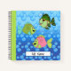 Here's a design that's perfect for the kids. This notebook features a blue gradient background, with a pattern of bubbles and three delightful little fish. By the spiral binding there is a yellow green band and the bottom has an area for a hold's name (or you can remove the box). These versatile notebooks are available in three styles and come with a choice of six spiral colours. Take your personal design even further by choosing one of eight page design options including College Ruled, Graph and Recipe. The notebook pages shown here are Practice Pages, for children learning to print.