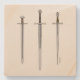A Norman-period sword with a Brazil nut pommel, a long-bladed "Great Sword" or "Sword of War" of the 13th or 14th century, and an acutely pointed thrusting sword of the Late Middle Ages appear side-by-side in this original illustration by Richard H. Fay.