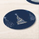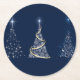 Three Modern Art Christmas Trees on Blue Round Paper Coaster
