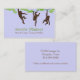 Fun mummy play date card done in blue, with graphics of three brown monkey silhouettes hanging from tree vines. Text in brown and green, on the front and back is ready to customise. Perfect as safety cards, play date cards, enclosure cards and calling cards, great way to arrange play dates, parties, and baby sitting co-ops.