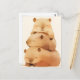 This cheerful capybara postcard is a wonderful choice for sending a "thinking of you" message or a cozy greeting to a friend who loves unique wildlife companions. You might choose to use this cute animal card for a sleepover party invitation or to celebrate a fun family afternoon spent learning about nature with your loved ones. It also makes a precious decorative piece for a nursery wall or a bright addition to a travel journal as a small token of happiness. This versatile design is also an excellent choice for a housewarming message, a baby shower thank you note, or as a heartwarming way to share a message of joy for any situation or event.