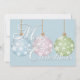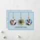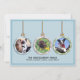 This flat holiday card features three non traditional colour Christmas ornaments on the front and back over pastel blue. The front ornaments are used as photo placeholders for you to replace with your personal photos of people or your pets. A square photo works best. Personalise the template fields with your greeting and other information or delete any of the text for a handwritten message.
