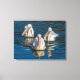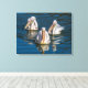 A beautiful close up photograph of three pelicans in a lake printed on a canvas.