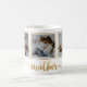 Give your mother this adorable mug with three special photos of her to celebrate a Happy Mother's Day. The word "mother" is in handwritten/calligraphic style with golden glitter details.