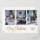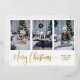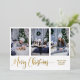 Three Photo, Elegant Merry Christmas Script, Real Foil Holiday Card