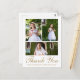 This elegant Catholic First Holy Communion thank you postcard features a three photo collage front with pretty gold typography on a white background, a sweet editable thank you message is on the back with a simple gold cross and return address. This First Holy Eucharist thank you card is editable for a variety of Christian religious occasions, or to update to your own personal thank you message. This card is also available in black.
