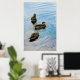 A photograph of three ducks on a pond.