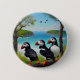 Three Puffin Birds Oil Paint, 6 Cm Round Badge
