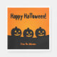 Halloween paper party napkins with three scary Jack-o-Lanterns. Personalised with your name.