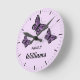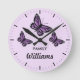Three Purple Butterflies With Family Name Round Clock