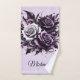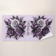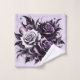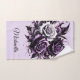 This illustration shows three beautiful roses, one white and two purple, surrounded by elegant black and purple decorations. Dark tones and complex details create a mysterious and gothic atmosphere, while lighter parts add contrast and extra depth. For a touch of personalization, consider adding a name or monogram to the towels.