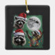 Three Raccoons With The Moon Galaxy Christmas Ceramic Ornament