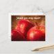 Still life of a three partially visible red apples against textured background. Postcard. Thanksgiving theme. You can change or delete the template text Thank you very much!
