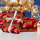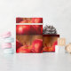 Still life of a three partially visible red apples against textured background. Wrapping paper. Autumn, thanksgiving theme.