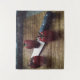 A watercolor style image which portrays three red tomatoes placed on a chopping board surrounding a chef's knife. Just celebrating a good garden harvest.