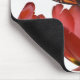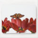 Three red tulips and a monarch butterfly against mouse mat