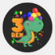 THREE REX 3 Year Old 3rd Birthday Boy Dino Classic Round Sticker