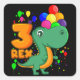 THREE REX 3 Year Old 3rd Birthday Boy Dino Square Sticker