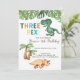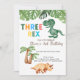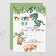three-rex 3rd birthday party invitation is a cute design with green colours and dinosaur .