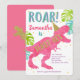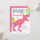 Girl, Dinosaur, Three-rex, Roar, Third Birthday Invitation