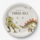 Dinosaur Three-Rex Birthday Party Paper Plates, Dino 3rd B'day Party Paper Plates