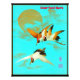 Vintage Japanese artwork "Three sarus crane flying in front of the moon" One of a large collection of vintage art based and original designs from PhoenixRetro.