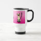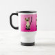 Siamese cat lovers will enjoy this cute travel mug. Three cartoon Siamese cat images, are around the mug, on a variegated light to dark pink background, which you can delete if you want.