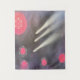 This piece features a gradient of dark purples and blacks, giving the impression of a starry night sky or outer space. The background is textured, adding depth and a sense of vastness, reminiscent of the cosmos. In the upper left corner, there's a large pink circle with a subtle pattern of overlapping circles within it, adding texture and depth. Inside the pink circle is a white wireframe icosahedron (a polyhedron with 20 triangular faces). Below and to the right of the large circle, there are three white comets, each with a bright white head and a trailing tail that fades into the background. White Wireframe Octahedron: On the left, there's a white wireframe octahedron (a polyhedron with 8 triangular faces) with a solid pink octahedron inside it. In the center, there's a white wireframe cube with a solid pink cube inside it. On the right, there's a white wireframe icosahedron with a solid pink icosahedron inside it. The use of bright pink against the dark background makes the geometric shapes stand out, drawing the viewer's attention to the intricate details of the Polyhedra. The combination of cosmic elements and geometric shapes creates a visually striking and thought-provoking piece, blending elements of science, mathematics, and art.