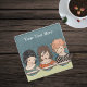 This glass drink coaster has a vintage image of a three little sisters with cute chubby cheeks eating their soup together. Customise the text with the template.