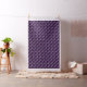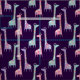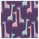 A trio of cute spotted giraffe images make a pattern on this adorable fabric that is great for a baby nursery or toddler. The giraffes are pastel teal green, pink, and lavender, and all with colorful spots.. The images are placed on a purple background.