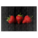 Three Strawberries On Black - Three red strawberries in a horizontal row photographed against a simple black background.