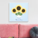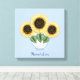 Three sunflowers with heart leaves in a vase on sky blue Canvas Print. A Gift made with love and kindness for everyone!