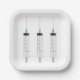 Three syringes with blue green and purple. This design looks really effective on these Paper Plates
